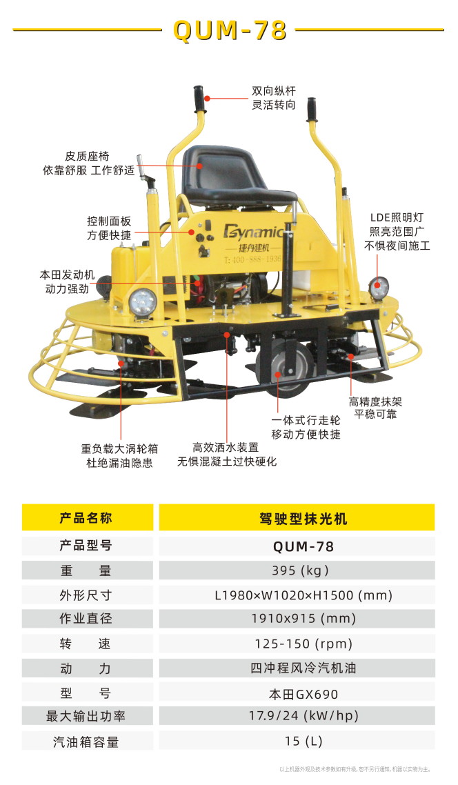 動(dòng)力駕駛式抹平機(jī)系列可大大提高混凝土表面凸起粘貼和抹平的工作效率,廣泛應(yīng)用于工廠、倉(cāng)庫(kù)、廣場(chǎng)等大面積地面建設(shè)。
